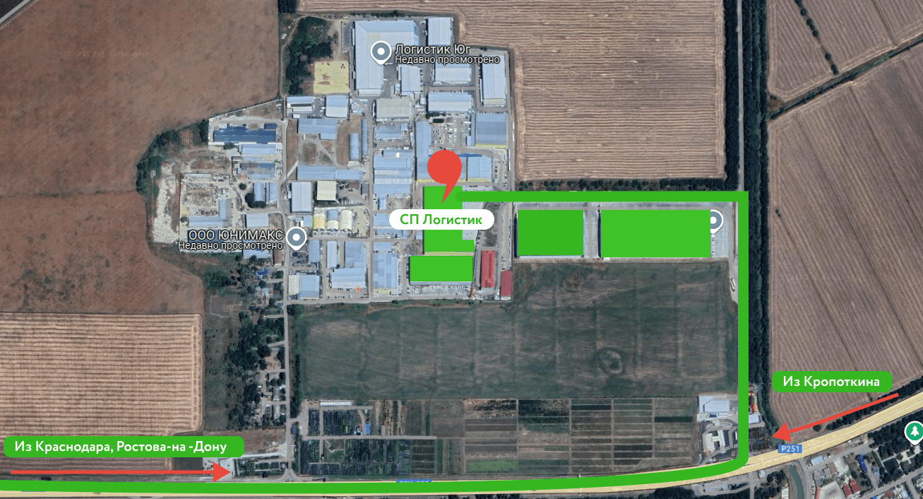 Благодаря расположению вдали от центра города, нас не касаются городские пробки, и с нашей территории есть прямые выезды (без заезда в Краснодар) на трассы:- Ростов, Москва (А136, М4)